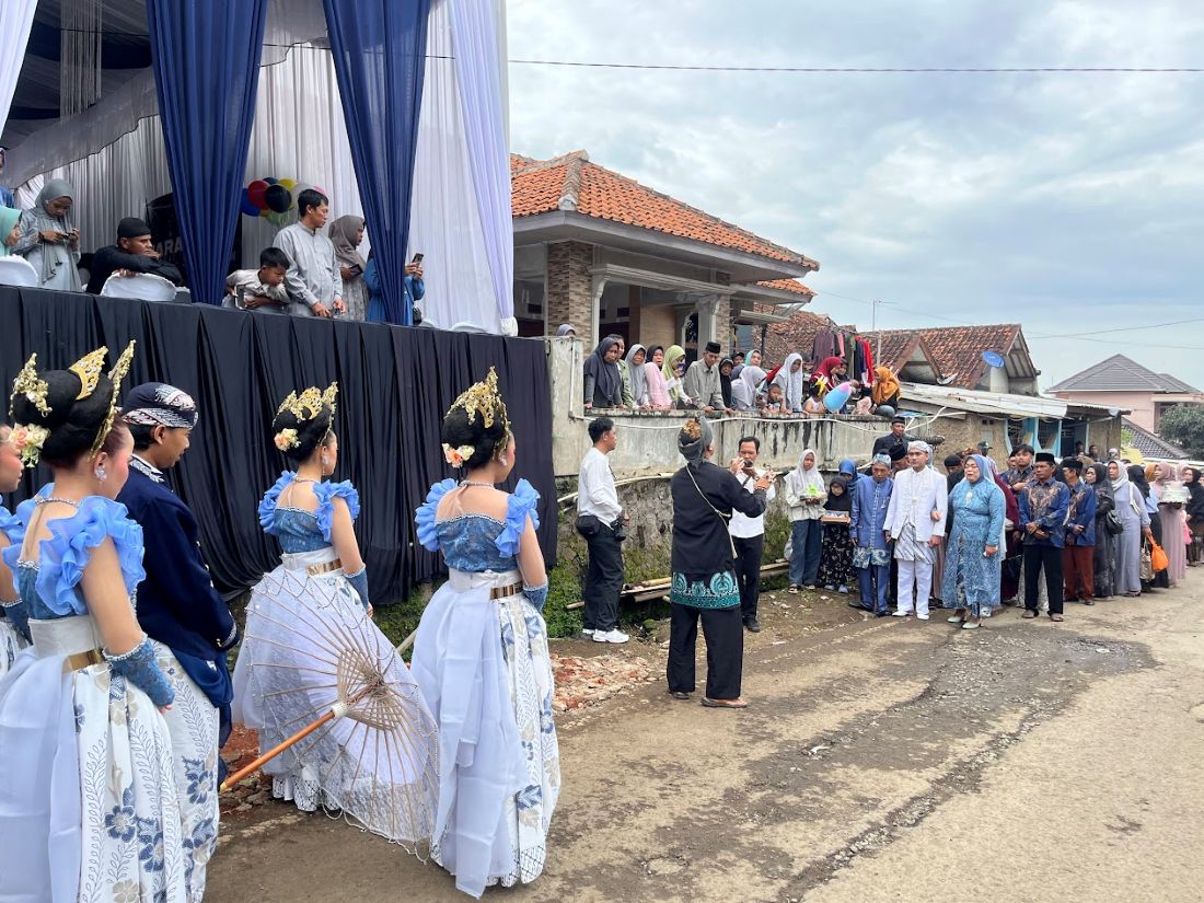 早朝、新郎家族が自宅に集まってから車で行列になって会場である新婦宅に向かうところから一日が始まりました。車の行列は20台以上にもなりました。このとき、めいめいにお菓子や日用品、ぬいぐるみ、洋服などのお土産の品を持ち寄ります。会場に到着するとすぐに、スンダ族の伝統的なダンスやコメディのパフォーマンスが始まります。